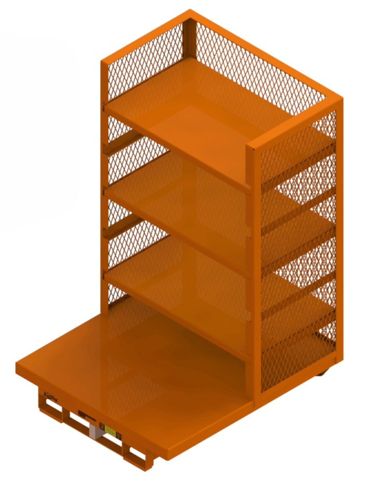 Features integrated fork pockets for easy transport and positioning within the warehouse.