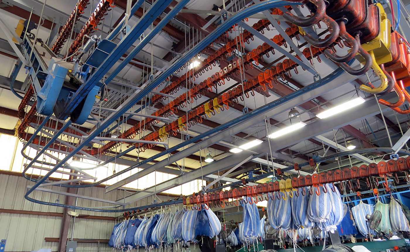 The 200 Series systems are ideal for laundries. The TC American monorail systems include proper switches, curves and special trolleys for the laundry industry. Laundry monorails reduce workers handling of linens and increase the available floor space by getting the laundry off the floor. With reduced handling the employee’s injury rate and fatigue are minimized.
