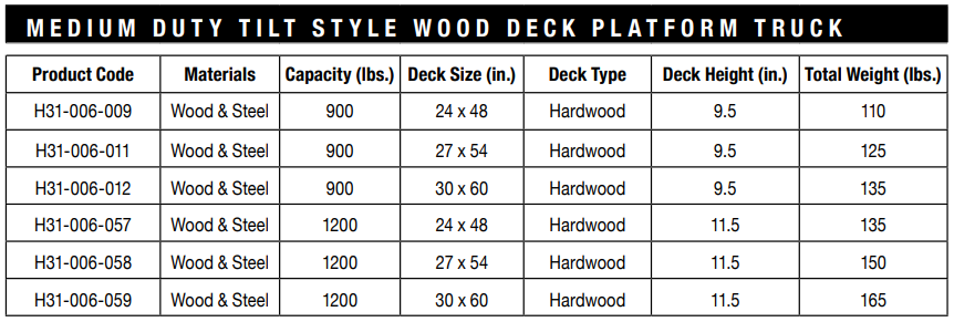 Durable wood surface prevents load slippage and withstands daily wear and tear.